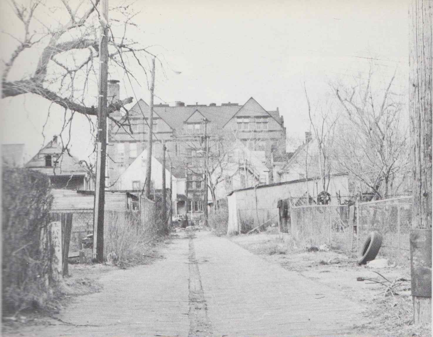 Old East High, ca. 1970s ID: 2527 | This file appears in: East High School A view of the rear of old East High School taken from a nearby alleyway, circa 1970s. This school was demolished when the new East High opened in 1975. | Source: Western Reserve Historical Society Download Original File SourceWestern Reserve Historical Society "Old East High, ca. 1970s" appears in: East High School