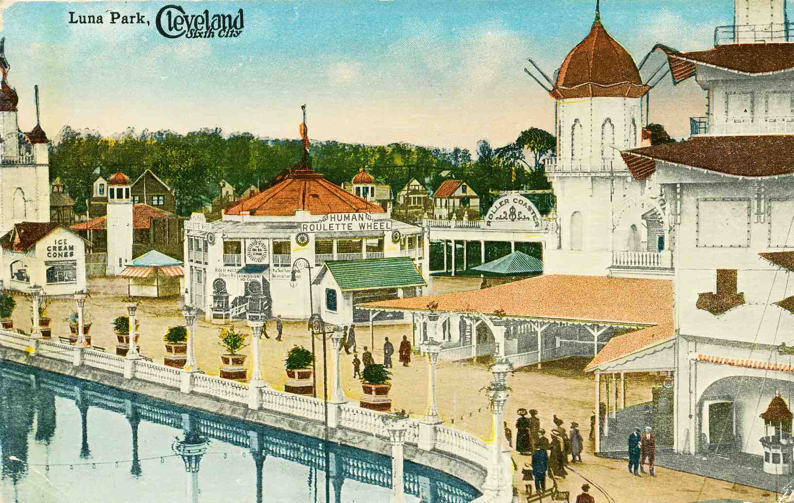 Brave visitors to Luna Park could take a ride on the "Human Roulette Wheel." The large building to the right of the ride was known as the Casino and featured a restaurant and dancehall where live bands played in front of huge crowds of dancers. | Source: J. Mark Souther Postcard CollectionDownload Original File