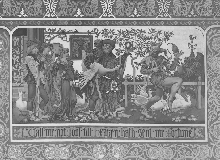 Two large murals by English illustrator Walter Crane depicting the "legend of the goose that laid the golden egg" decorated the bank's interior upon its opening in 1890. Representative of the conservatism that Society for Savings was known for, the fable warned visitors against greed and short sighted paths to accumulating wealth. | Source: Cleveland Public Library Photograph CollectionDownload Original File