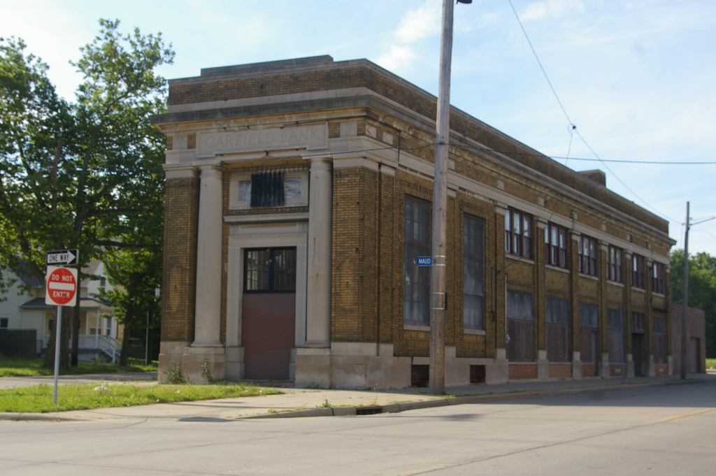 This branch of the Garfield Savings Bank at St. Clair Avenue and East 79th Street opened in 1915. The two Tuscan columns framing the building's temple front demonstrate how Walker and Weeks incorporated classical architecture into even the smaller banks that they designed during this time.