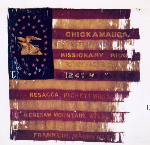 The 124th Ohio Volunteer Infantry Flag ID: 2897 | This file appears in: Camp Cleveland The 124th OVI was trained at Camp Cleveland In January of 1863. The unit served until July 9, 1865. Many of the men belonging to the this regiment were Clevelanders. | Source: Ohio Historical Society and OhioMemory.org Download Original File SourceOhio Historical Society and OhioMemory.org "The 124th Ohio Volunteer Infantry Flag" appears in: Camp Cleveland