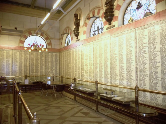 The Tablet Room ID: 3024 | This file appears in: Soldiers' and Sailors' Monument The 10,000 Union Soldiers from Cuyahoga county are engraved on the marble walls of the tablet room. Above the tablets are some of the busts of soldiers killed in action. | Creator: Heidi Kathleen Elise Fearing Download Original File CreatorHeidi Kathleen Elise Fearing "The Tablet Room" appears in: Soldiers' and Sailors' Monument
