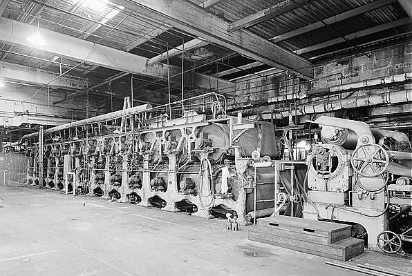 Jaite workers fed wet fibers into one end of the Fourdrinier machine and onto a conveyer belt. The "press section" of the machine then squeezed out any remaining moisture using extremely heavy pressure.