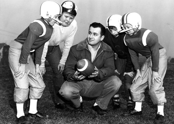 Athletic programs such as football were offered at the East End Neighborhood House. The coach was Bill Barnick, who is pictured here with (from Left to Right) William Brewer, John Timko, Anthony Marotta, and Jackson Brewer. Individuals in the community offered their talents to the organization in order to offer programs that taught children and bound the community together.