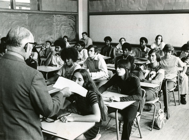 When the racially-motivated clashes first began at Collinwood High School, the student body was composed of 20 percent black and 80 percent white. The violence escalated as the number of black students at the school increased. By fall of 1974, the year that Harvey Short, Jr. and the Brookins brothers were stabbed and David Britton was shot while playing basketball, the school was almost equally divided between black and white students. | Source: Cleveland Memory Project, Cleveland State University Library Special CollectionsDownload Original File