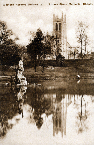Amasa Stone Memorial Chapel ID: 368 | This file appears in: Case Western Reserve University Amasa Stone Memorial Chapel, seen here from across Wade Lagoon, was erected in 1911. Image courtesy of Cleveland State Library Special Collections Download Original File "Amasa Stone Memorial Chapel" appears in: Case Western Reserve University