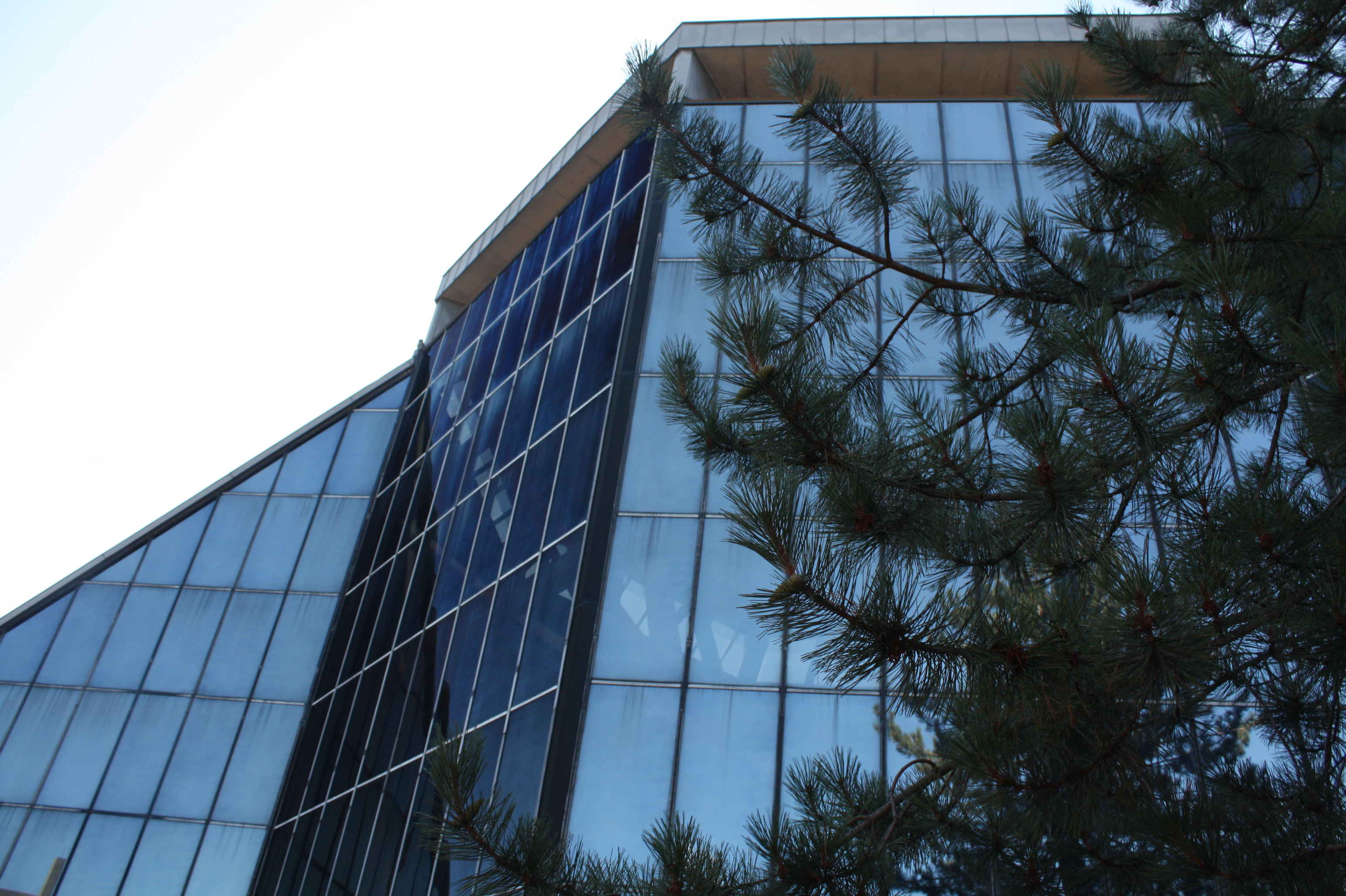 The reflective glass of the wall facing north provides the parishioners with much light and a marvelous view of the outdoors. | Creator: CSU Center for Public History + Digital HumanitiesDownload Original File