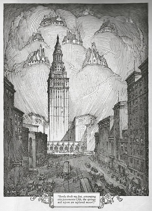 "Six hundred feet up, above the smoky city, and miles beyond the reach of its noise and turmoil." Shaker Village was advertised as the antithesis of urban life by the Van Sweringen Co. in their publication "Peaceful Shaker Village." The idyllic community, and the value of the grounds, was to be guarded against the encroachment of urban influences through protective restrictions. | Source: Shaker Historical SocietyDownload Original File