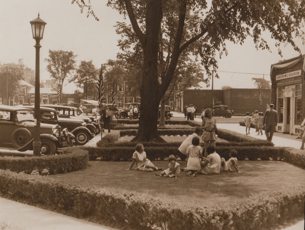 Children sit on a lawn in the northwest quadrant of Shaker Square in 1938. | Source: Cleveland Memory Project, Cleveland State University Library Special CollectionsDownload Original File