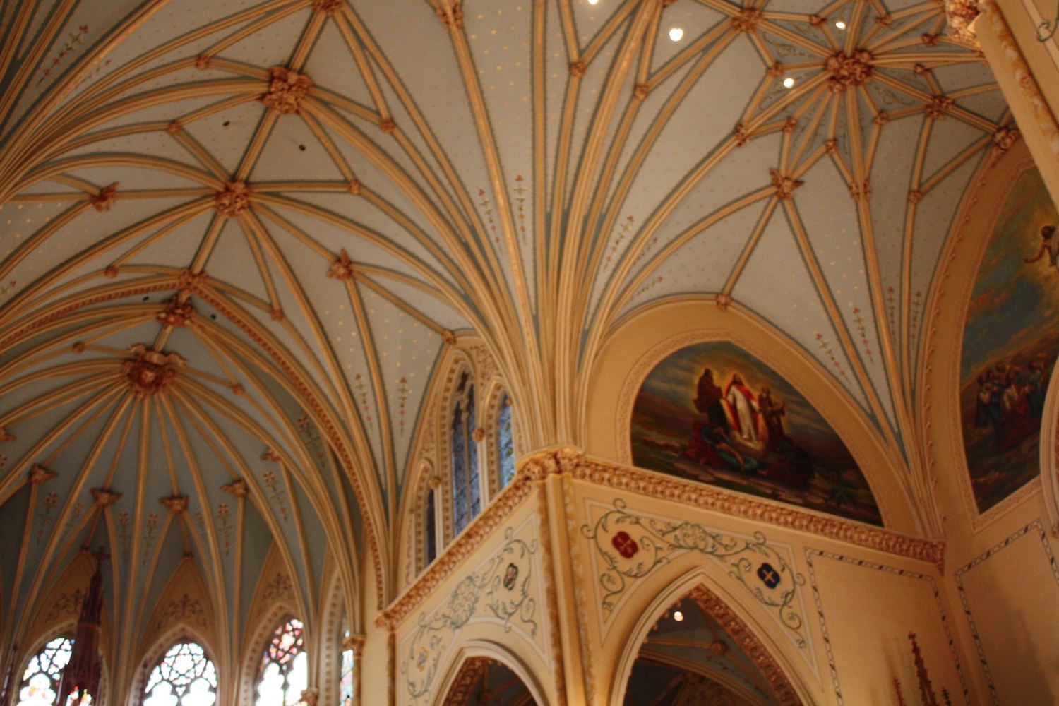 The vaulted ceiling spans 30 feet across the nave of the church. Space above the ceiling houses rooms for storage. A new light weight design enabled the construction of a higher ceiling. The interior was totally renovated in 1998. | Creator: CSU Center for Public History + Digital HumanitiesDownload Original File