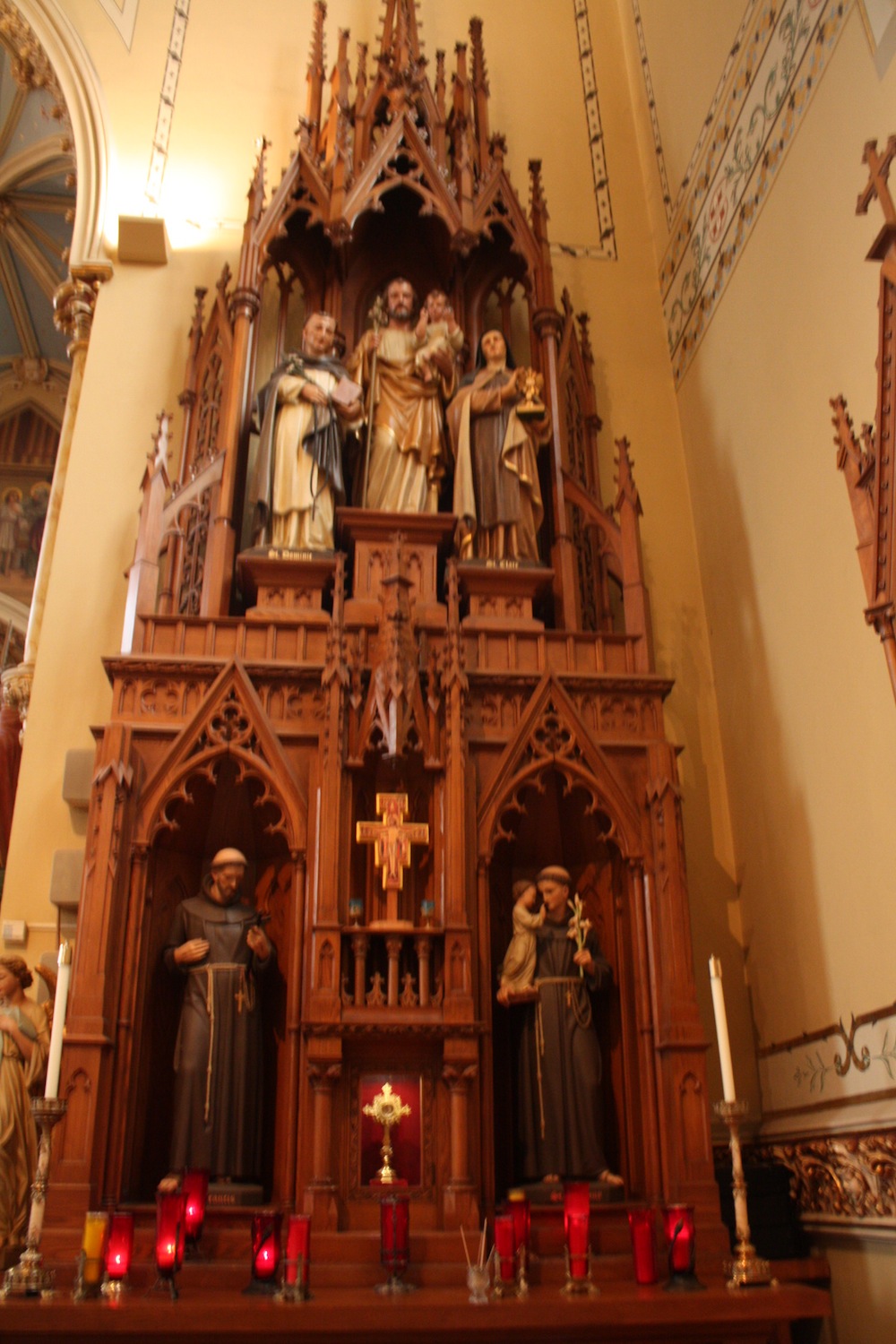 Each altar contains statues honoring saints and angels housed in the hand carved altar structure. Relics of St. Clare, St. Anthony, and St. Francis are enshrined in this altar. | Creator: CSU Center for Public History + Digital HumanitiesDownload Original File