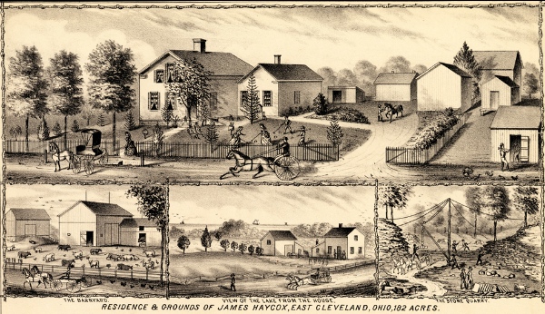 James B. Haycox operated a dairy and stone quarry on what became the eastern half of Forest Hill until his death in 1907. A neighbor of Haycox to the north and west, Worthy Streator, sold his land more than a decade earlier to Patrick Calhoun, grandson of Vice President James C. Calhoun, and John D. Rockefeller. While Calhoun developed Euclid Heights, among the oldest garden suburban allotments in Cleveland, the Rockefeller and Haycox lands became Forest Hill. | Date: 1874 | Source: Cleveland Memory Project, Cleveland State University Library Special CollectionsDownload Original File