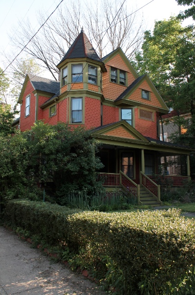 The term "painted lady" is an architectural term for Victorian houses painted with three or more colors to accentuate gingerbread details and delineate different sections of a house. Painted ladies can be found anywhere homeowners have either adhered to original color schemes of the late 19th century or chosen to capture one of the most exuberant expressions of the Victorian age. Reminiscent of houses in San Francisco, this painted lady stands on "Upper Hampshire" on the steep hill above Coventry Village. | Source: J. Mark SoutherDownload Original File