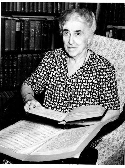 Hughes retired from official service as manager of the Cleveland Orchestra in 1945. Even so, she continued to work with them. Pictured here in August of 1949, just months before her death in 1950, she was still writing notes on the orchestra's music. | Source: Cleveland Memory Project, Cleveland State University Library Special CollectionsDownload Original File