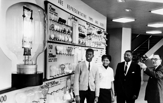 Produced in 1954 to commemorate the 75th anniversary of the Edison lamp, GE's 75,000-watt bulb was the world's largest. Equivalent to the light produced by 2,874 60-watt bulbs, this innovation was the antithesis of today's trend toward energy-saving bulbs. Today the bulb is on display at Edison's winter home and laboratory in Fort Myers, Florida. | Source: Cleveland State University Library Special CollectionsDownload Original File