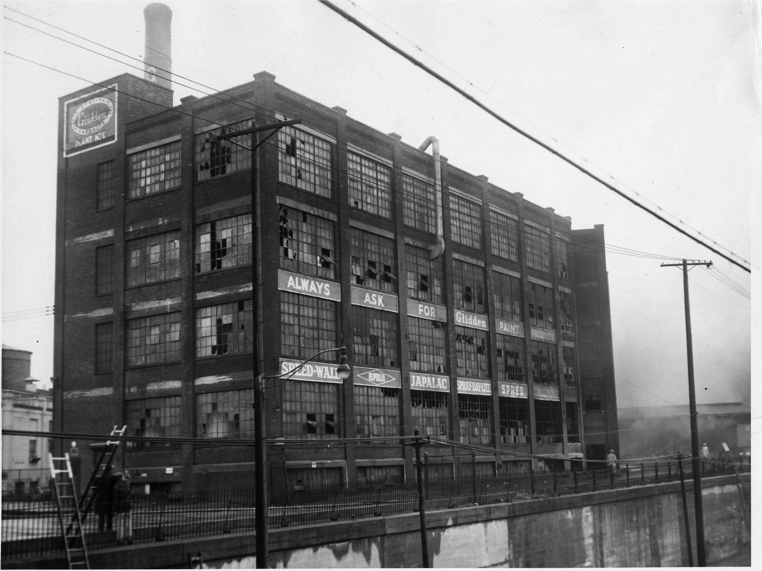 This was one of the Glidden Co.'s factory buildings in the Cleveland area. It stood on the corner of Berea Road and Madison Ave in Lakewood. The Glidden family sold the paint company in 1917. With new owners, the company began extensive research in oil-based products, and by the mid-20th century developed interior and exterior latex paint. Glidden Co. continues to sell paint and varnish to this day. | Source: Cleveland Memory Project, Cleveland State University Library Special CollectionsDownload Original File