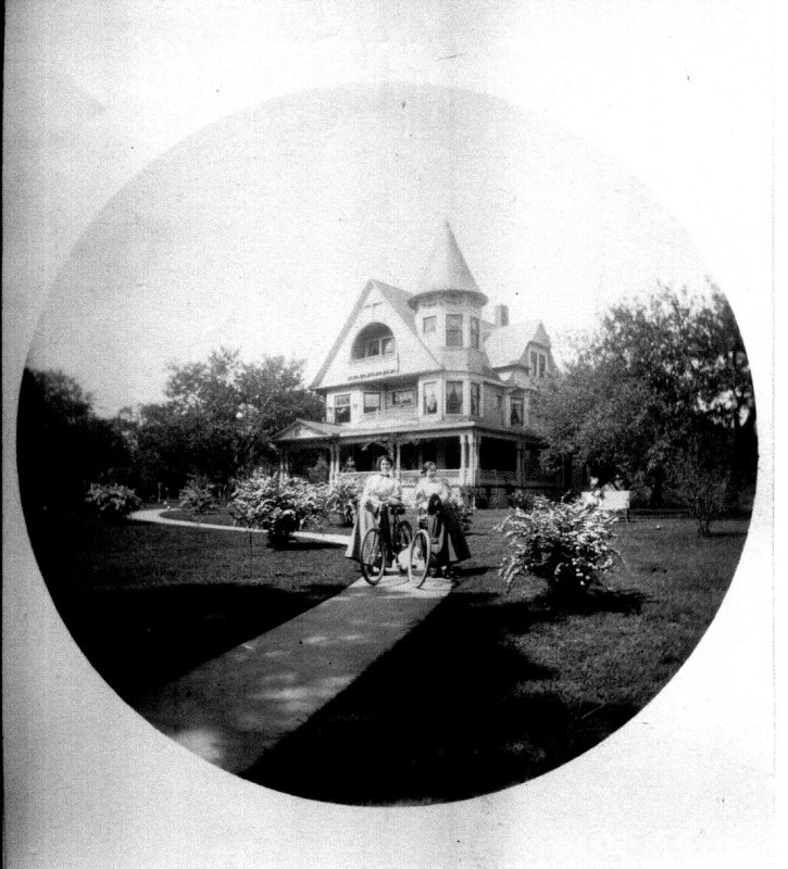 Bicycling at Evergreen ID: 4636 | This file appears in: E. A. Schellentrager House This undated photograph depicts two of E. A. Schellentrager's daughters and their bicycles outside Evergreen. | Source: Raymond L. Pianka Collection Download Original File SourceRaymond L. Pianka Collection "Bicycling at Evergreen" appears in: E. A. Schellentrager House