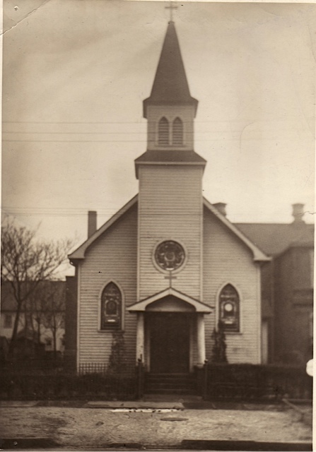 This white, wood-framed structure was built by its Slovak-American parishioners in 1917. The church was originally called St. John the Baptist, but the name was changed to Our Lady of Mercy in the 1920s. This church served the parish's needs until 1948 when construction on the "Little Cathedral" began. | Source: Slovak Institute of ClevelandDownload Original File
