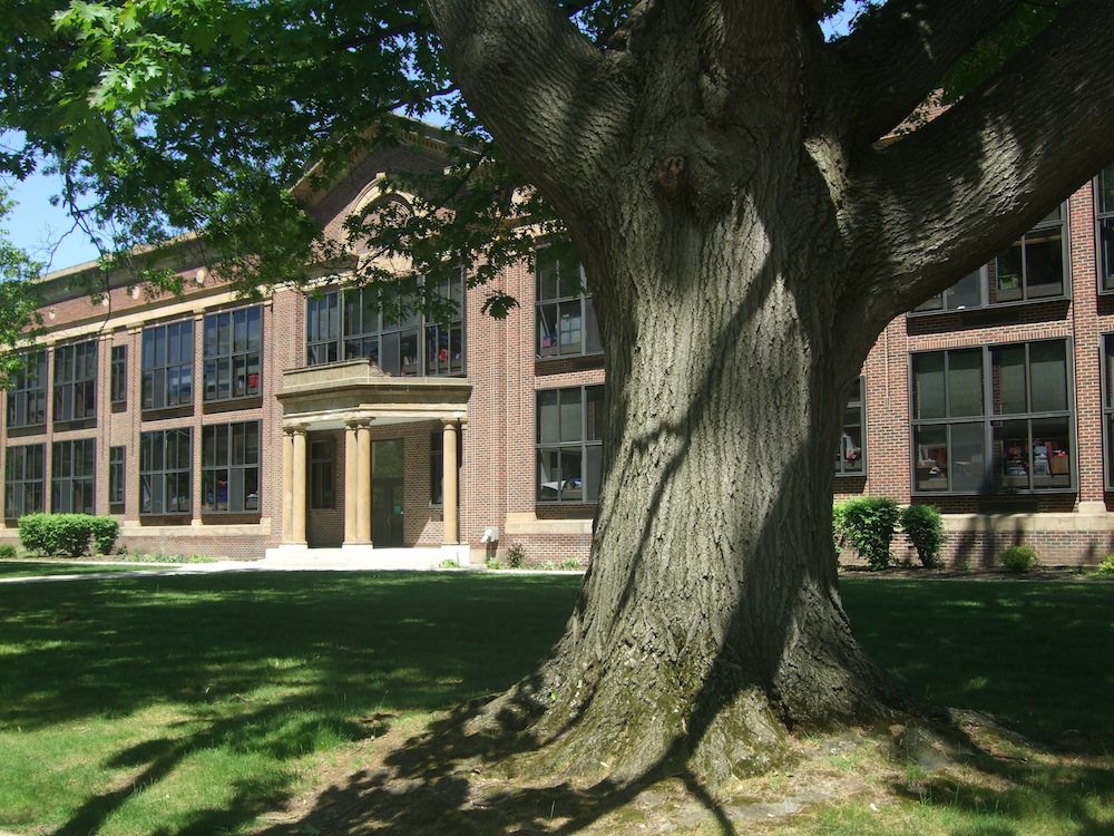 Recent View of Exterior ID: 4753 | This file appears in: Noble Elementary School Despite the 1970s windows, the grandeur of the 1922 building and the original trees remain today at Noble Elementary School. | Creator: Mazie Adams Download Original File CreatorMazie Adams "Recent View of Exterior" appears in: Noble Elementary School