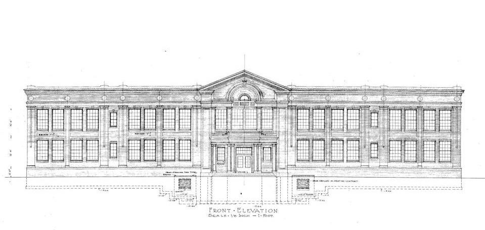 Elevation Sketch, 1921 ID: 4760 | This file appears in: Noble Elementary School Franz C. Warner designed several of the Cleveland Heights School district's early 20th-century buildings, including the 1922 Noble building pictured here. | Source: Cleveland Heights High School Alumni Foundation Download Original File SourceCleveland Heights High School Alumni Foundation "Elevation Sketch, 1921" appears in: Noble Elementary School