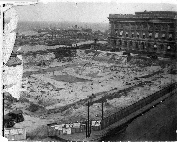 The west end of the Cuyahoga County Courthouse around the time of construction. At one time the city panned to build a probate court next to the courthouse but it was never built. It is speculated that the city ran out of money or that the deed restricted the construction. | Source: Cleveland Memory Project, Cleveland State University Library Special CollectionsDownload Original File