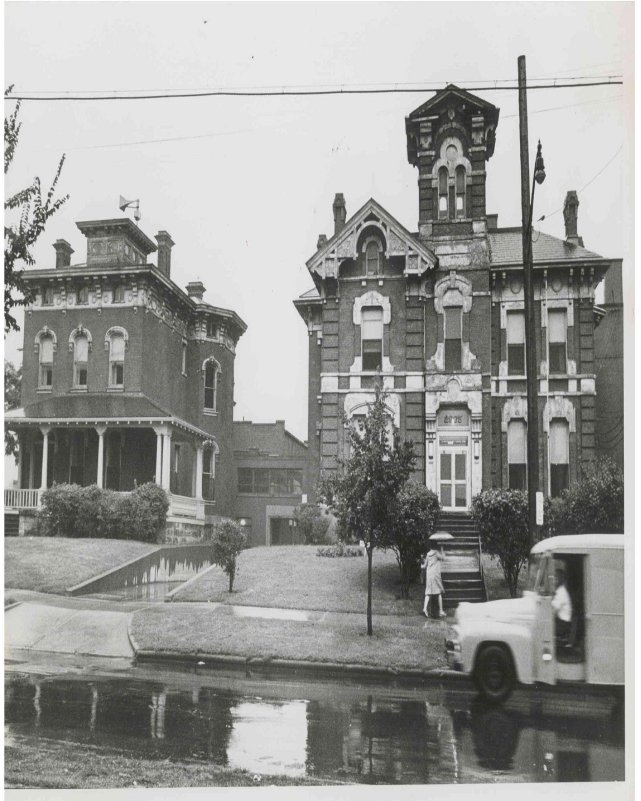 In the years 1939 to 1962, the Robert Russell Rhodes mansion served as a County Nursing Home. This undated photo (circa 1960) depicts the condition of the mansion and the Nelson Sanford mansion next door to it during this era.