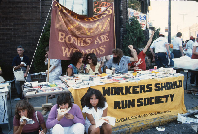 'Books Are Weapons,' 1983 ID: 5199 | This file appears in: Mac's Backs-Books Supporters of a socialist political organization run a book-selling stand at the 1983 Coventry Street Fair. Image courtesy of Joe Polevoi Download Original File "'Books Are Weapons,' 1983" appears in: Mac's Backs-Books