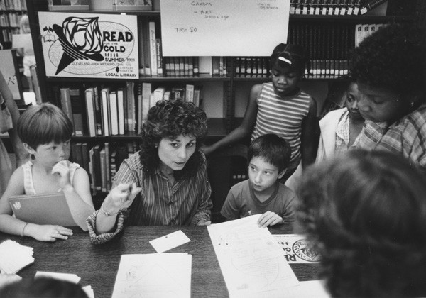 Jane Bossu with Children, 1983 ID: 5223 | This file appears in: Noble Library Jane Bossu reads with a group of kids during a summer reading program held at Noble Library. Image courtesy of Cleveland Heights-University Heights Public Library Download Original File "Jane Bossu with Children, 1983" appears in: Noble Library