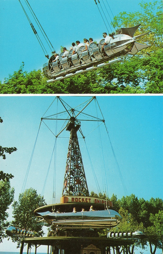 The Rocket Ships ride opened at Euclid Beach amusement park in the 1930s, offering patrons a thrilling ride on a futuristic spacecraft. | Source: Cleveland State University. Michael Schwartz Library. Division of Special Collections. Cleveland Press Collection.Download Original File