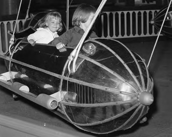 The rocket ships were so popular at Euclid Beach that a kiddie version of the ride was built. | Date: 1964 | Source: Cleveland State University. Michael Schwartz Library. Division of Special Collections. Cleveland Press Collection.Download Original File