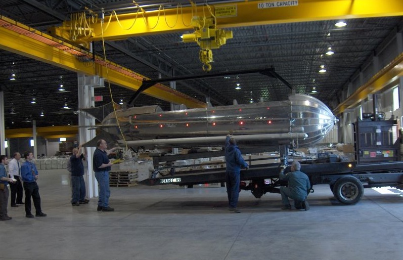 When the current owners of two Euclid Beach rocket ships acquired a ship that had been abandoned in a warehouse, it had to be delicately towed away. It is now much easier to get the ship from point A to point B. | Source: Euclid Beach BoysDownload Original File
