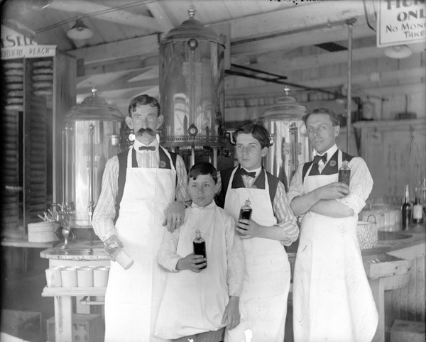 When the Humphrey family purchased Euclid Beach they banned the sale of alcohol at the park, going as far as to prevent intoxicated people from entering the grounds. Instead of beer, the park sold various flavors of soda from beverage stands such as the one seen here. | Source: Image Courtesy of Cleveland State University. Michael Schwartz Library. Division of Special Collections. Cleveland Press Collection.Download Original File