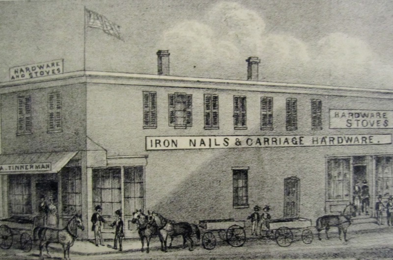 In 1870, George A. Tinnerman, a tinner by trade, opened a hardware store on Lorain Avenue, just east of its intersection with Fulton Road. Among the products he sold at this store were cast iron stoves. George's dissatisfaction with these cumbersome stoves would inexorably lead to the creation of a new fastener called a "speed nut" that would revolutionize the the assembly of automobiles and aircraft in America. This sketch first appeared in the 1874 Cleveland Atlas.