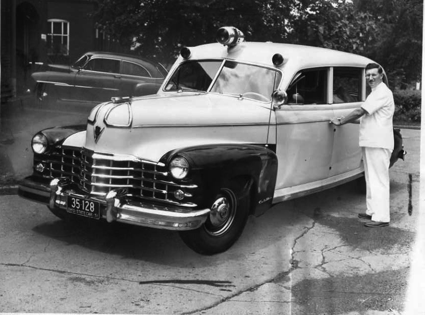 Leslie Mugford, pictured here, was the head aide that hired Ostrow one year prior. This photo from August 6, 1952 shows Mugford posing in front of a new ambulance the hospital recently acquired. | Date: 1952 | Source: Cleveland State University. Michael Schwartz Library. Special Collections.Download Original File