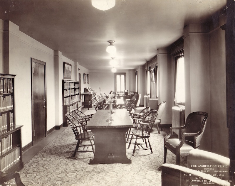 Library ID: 5872 | This file appears in: Creating Cleveland Clinic This is a picture of the library at the original Cleveland Clinic. ImageCourtesy of Case Western Reserve University. Dittrick Medical History Museum. Download Original File "Library" appears in: Creating Cleveland Clinic