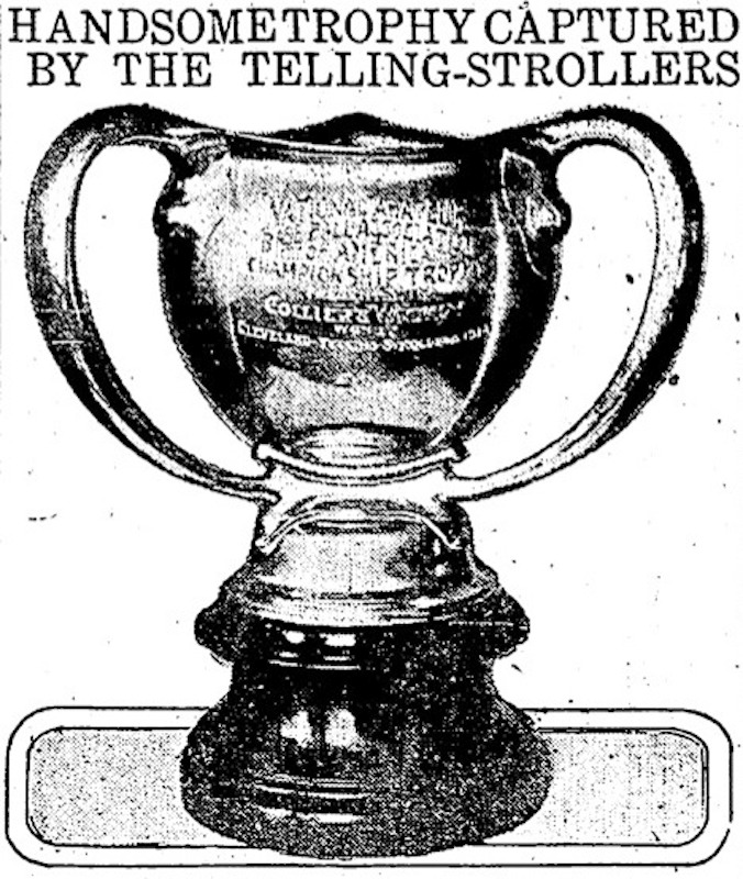 NABA Trophy, 1914 ID: 5894 | This file appears in: National Amateur Baseball Association Tournament The Telling's Strollers captured the national amateur championship in 1914. NABA offered any team that could capture the trophy three years in a row a $1,000 prize. | Date: 1914 | Source: Cleveland Plain Dealer Download Original File SourceCleveland Plain DealerDate1914 "NABA Trophy, 1914" appears in: National Amateur Baseball Association Tournament