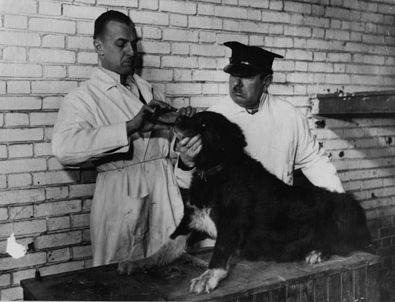 Struggling with impaired mobility and a weak heart, Balto was euthanized on March 14, 1933 at the age of fourteen. Even in death, Balto retained his celebrity. The body was mounted and placed on display at the Cleveland Museum of Natural History, where it rivaled a collection of shrunken heads for being the most requested exhibit. The famous canine's thyroid and adrenal glands were also preserved in George Crile's organ collection at the Cleveland Clinic. | Date: 1933 | Source: Cleveland State University. Michael Schwartz Library. Special Collections.Download Original File