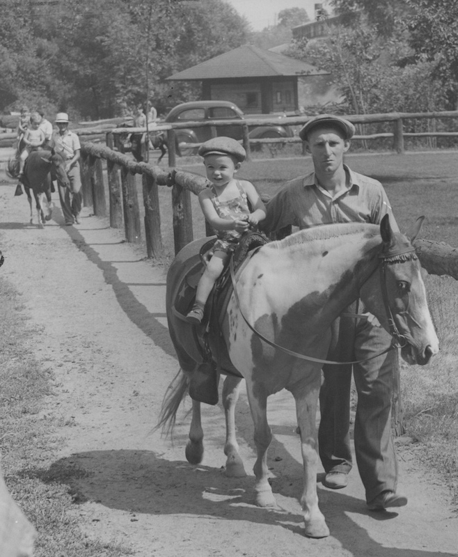 Pony rides were one of the most popular attractions of the zoo during the economic crisis. Introduced by 1928, zoo officials boasted of more than 1,000 free pony rides given to youngsters in a single day that year. With ten of the 19 ponies loaned to the zoo by an ice cream company, and due to their affordable diet of hay, pony rides proved to be a Depression-friendly attraction for the cash strapped park. It was believed that over 65,000 children had received rides during the 1937 season. The attraction continued to be highly anticipated summer fare for Cleveland's children through the mid century, and was only rivaled in popularity by the unveiling of adorable baby animals. | Source: Image courtesy of Cleveland Public Library Photograph CollectionDownload Original File