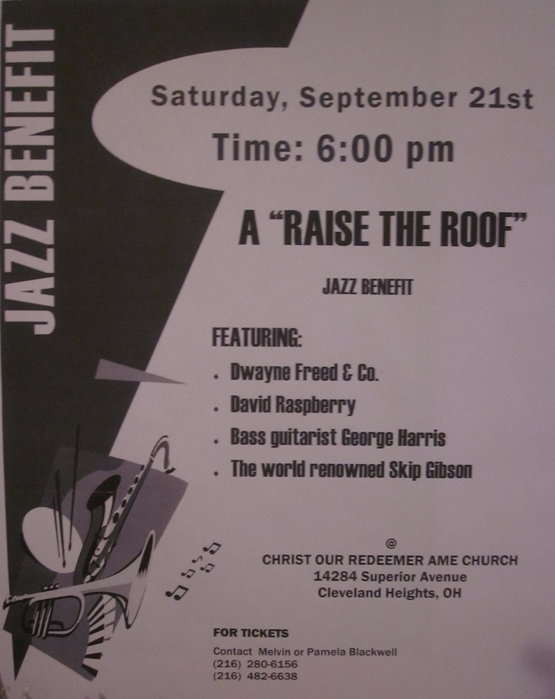 Christ Our Redeemer A.M.E. Church held a jazz benefit on September 21, 2013, to raise funds to undertake the most urgently needed roof and tower repairs as part of a larger restoration effort. | Creator: Christ Our Redeemer A.M.E. Church
