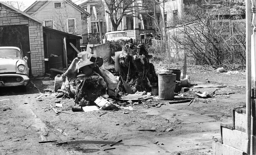Cluttered yard located at 620 East 101st Street in April 1965. | Date: 1965 | Source: Cleveland State University. Special Collections. Cleveland Memory Project.Download Original File
