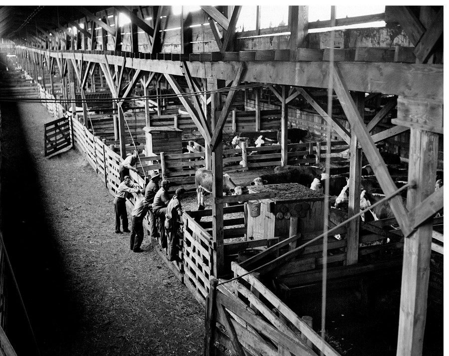 On an almost daily basis, buyers from the nearby packinghouses would come to the Cleveland Union Stockyards to buy cattle, hogs and/or sheep. In this 1946 photo, buyers negotiate with a seller's commission agents to purchase the cattle in the nearby pen. They hope they don't get a bum steer!