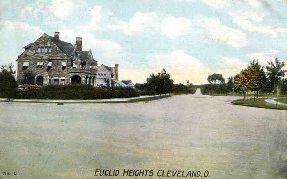 A colorized view of the John Hartness Brown house, at the intersection of Edgehill and Overlook Roads, which still stands today. Brown was one of the junior developers of Euclid Heights and was suspected of murdering another partner, William Lowe Rice.