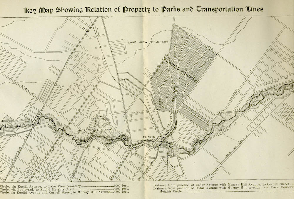 Euclid Heights Location Map, ca. 1896 ID: 6414 | This file appears in: Euclid Heights Allotment Map from the Euclid Heights sales brochure showing the relationship between the Euclid Heights Allotment and the city's system of streetcars and parks. Image courtesy of William C. Barrow Download Original File "Euclid Heights Location Map, ca. 1896" appears in: Euclid Heights Allotment