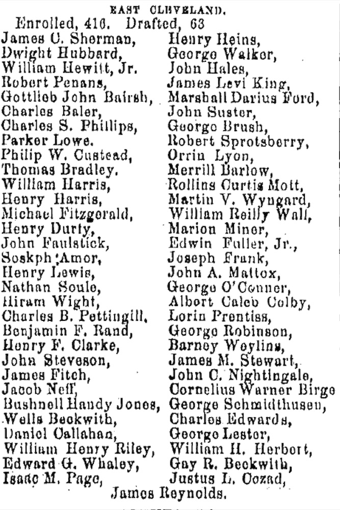 Two years after returning from Nebraska Justus Cozad was drafted into the Union Army. By this time he had become successful enough to hire a substitute to serve in his place and never joined the Union ranks. This draft announcement lists his name at the bottom of the right hand column.