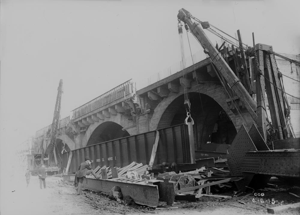 The Holton Road Bridge under construction. This large concrete arch bridge is little-known to most Clevelanders. | Source: Cleveland & Youngstown Railroad Collection, Cleveland State University Library Special CollectionsDownload Original File