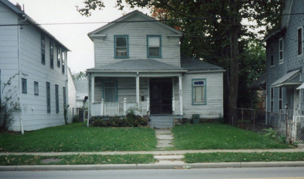 Built in 1839, the Burton House, located at 2678 West 41st Street, is one of the oldest houses in the Clark-Fulton neighborhood. (It is worth noting that West 41st Street, a major north-south road on the west side which extends 1.5 miles from Lorain Avenue to Fulton Road, was formerly called Burton Street, after William Burton.) This photo, taken in 1997, shows the house when it was in still in livable condition. The house's beautiful exterior French doors have, since the time of this photo, been removed. | Source: Rosary Orlando MartinoDownload Original File