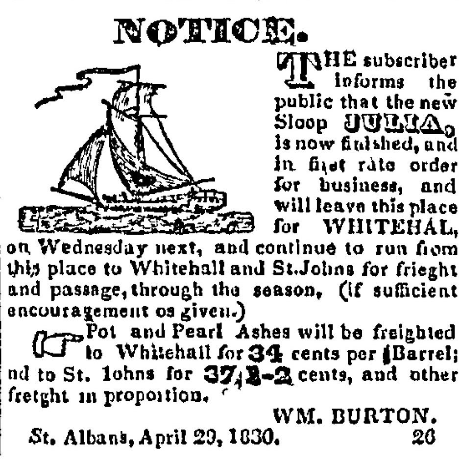 This Ad from the St. Alban's (Vermont) American Repertory describes the business of William Burton in 1830--two years before he came to Cleveland. Burton founded an important ship refueling station on the Great Lakes in 1836 and built the Burton House in 1839.