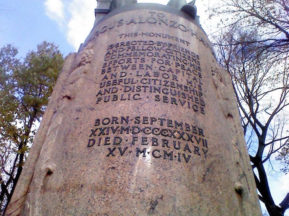 As you can see from the inscription, despite being very close to William McKinley, neither the president nor politics ever appear on the plaque. Only Hanna's "Distinguished Public Service" hints at his role in politics. | Source: Kyle Addison BennettDownload Original File