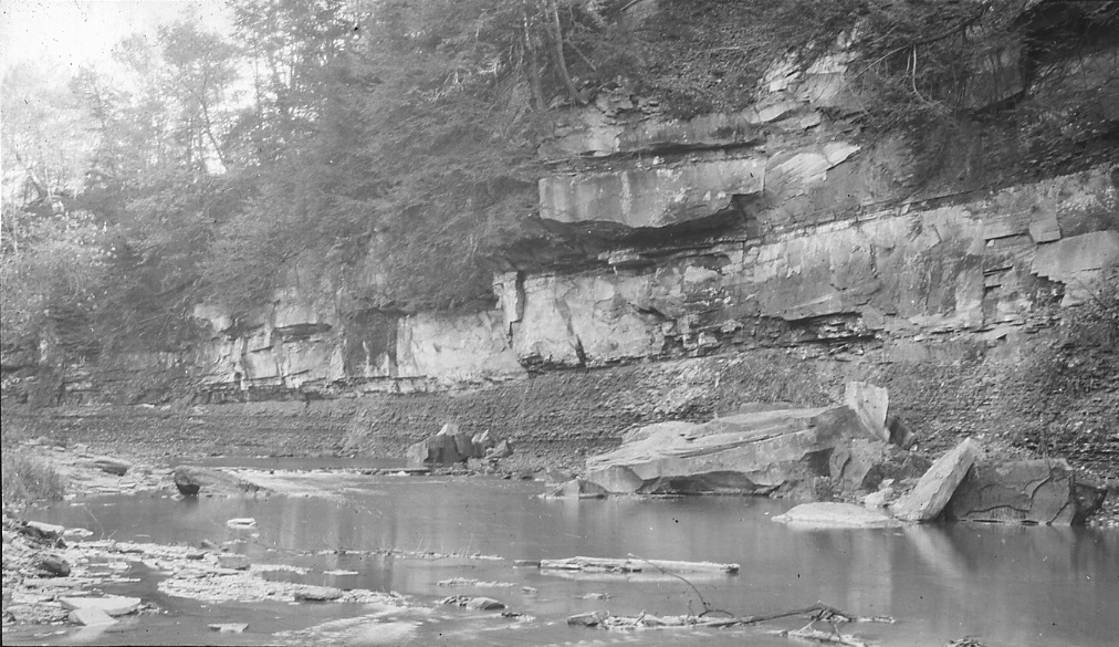 Along the Aurora Branch of the Chagrin River, thick layers of Berea grit can be found sitting on top of Bedford shale. The rugged landscape surely provided a scenic backdrop for Griffithsburg, but also limited accessibility to the town. Picture above is near Squaw Rock in the Cleveland Metroparks South Chagrin Reservation. | Source: Courtesy of The Jesse Earl Hyde Collection, Case Western Reserve University Department of Geological SciencesDownload Original File