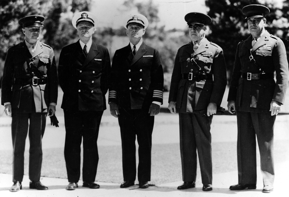 In this 1939 photo, Captain Isaac Kidd (center) is shown with Admiral Chester Nimitz (immediately to Kidd's right). Nimitz, later Commander in Chief of the Pacific Fleet during World War II, had been a captain of the Arizona and, at the time this photo was taken, was serving as Commander, Battle Division ONE, the same position in which Kidd was serving two years later when he died on the Arizona. | Source: Collection, Archives Branch, Naval History and Heritage Command, Washington, DCDownload Original File